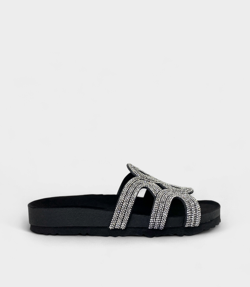 Nuestras sandalias Mery combinan el negro clásico con un destello increíble de brillos. Cómoda y con estilo.